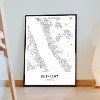Bilder, die Geschichten erzählen über Reisen, Liebe und Erinnerungen. Wir bei Cartida haben deine Stadtkarte von Küsnacht in Zürich, Schweiz. Dargestellt als Schwarzplan mit Gebäuden oder als Minimal City Map mit filigranen Straßennetz.