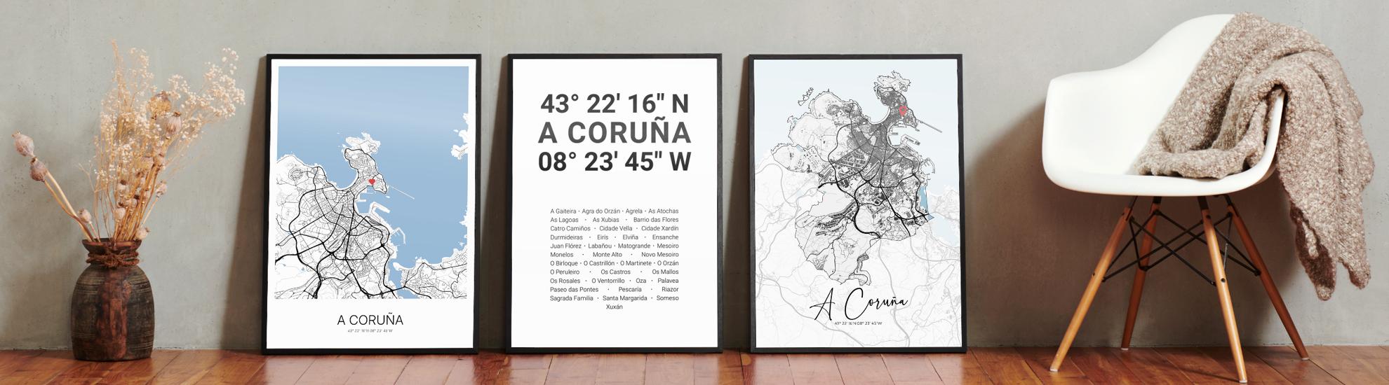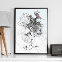 Bilder, die Geschichten erzählen über Reisen, Liebe und Erinnerungen. Wir bei Cartida haben deine Stadtkarte von A Coruña in Galicia, Spanien. Dargestellt als Schwarzplan mit Gebäuden oder als Minimal City Map mit filigranen Straßennetz.
