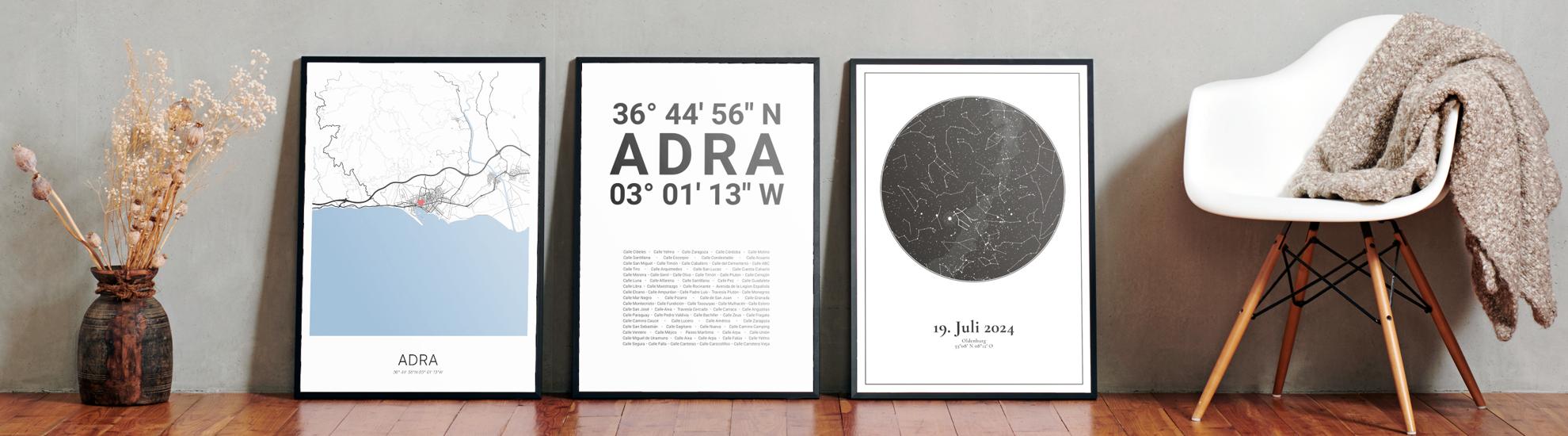 Bilder, die Geschichten erzählen über Reisen, Liebe und Erinnerungen. Wir bei Cartida haben deine Stadtkarte von Adra in Andalucía, Spanien. Dargestellt als Schwarzplan mit Gebäuden oder als Minimal City Map mit filigranen Straßennetz.