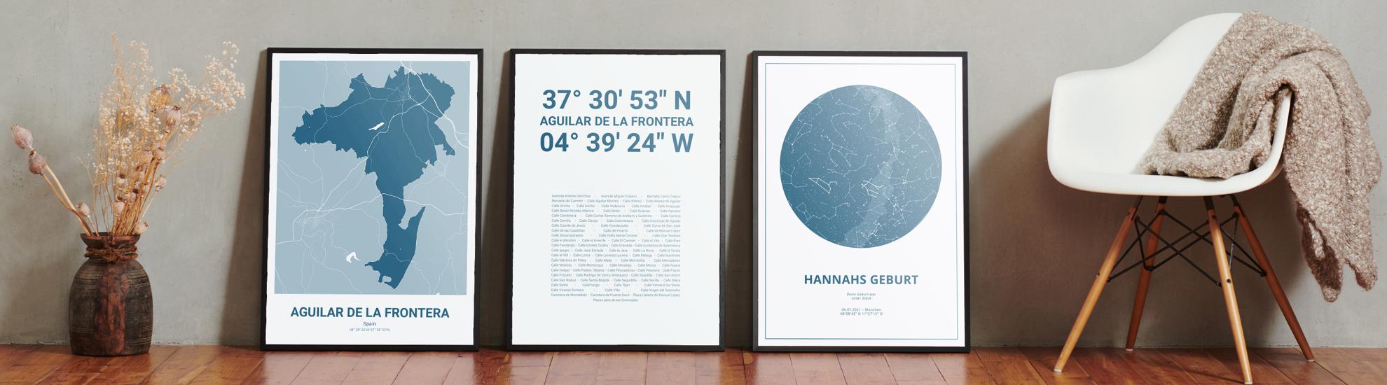 Wähle Farben und Layouts, die perfekt zu dir passen. Ob als klassische Karte in schwarz-weiß oder in modernen Farben. Bei Cartida kannst du ein Design in deinen Lieblingsfarben wählen. Erstelle eine Variante von Aguilar de la Frontera, die perfekt zu dir und deiner Wohnung passt.