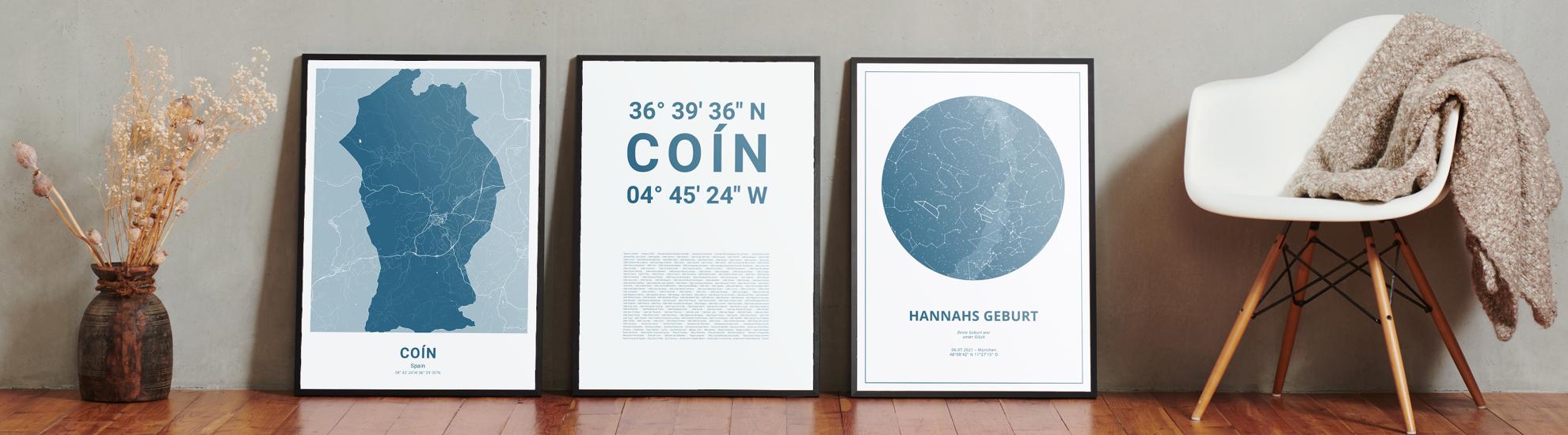 Zahlen, die die Welt bedeuten. Erstelle jetzt dein persönliches Koordinaten-Kunstwerk von deiner Lieblingsstadt. Entscheide selbst, ob Stadtteile, Straßen oder ganz eigene Texte abgedruckt werden. Perfekt als Geschenk zum Einzug oder für die eigenen vier Wände.