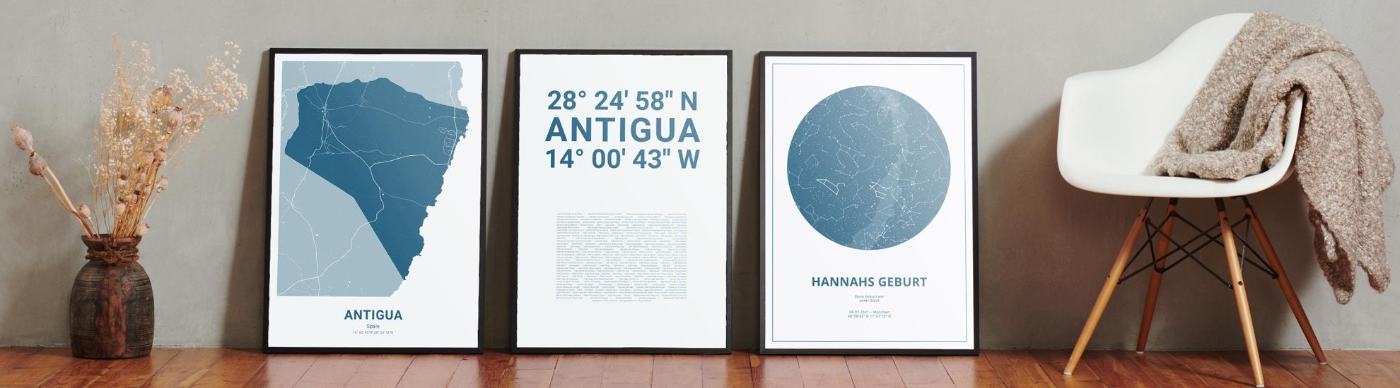 Wähle Farben und Layouts, die perfekt zu dir passen. Ob als klassische Karte in schwarz-weiß oder in modernen Farben. Bei Cartida kannst du ein Design in deinen Lieblingsfarben wählen. Erstelle eine Variante von Antigua, die perfekt zu dir und deiner Wohnung passt.