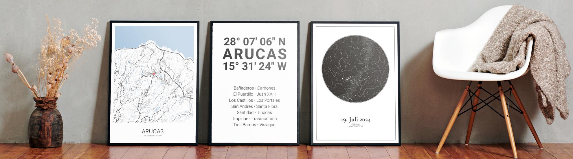 Wähle Farben und Layouts, die perfekt zu dir passen. Ob als klassische Karte in schwarz-weiß oder in modernen Farben. Bei Cartida kannst du ein Design in deinen Lieblingsfarben wählen. Erstelle eine Variante von Arucas, die perfekt zu dir und deiner Wohnung passt.