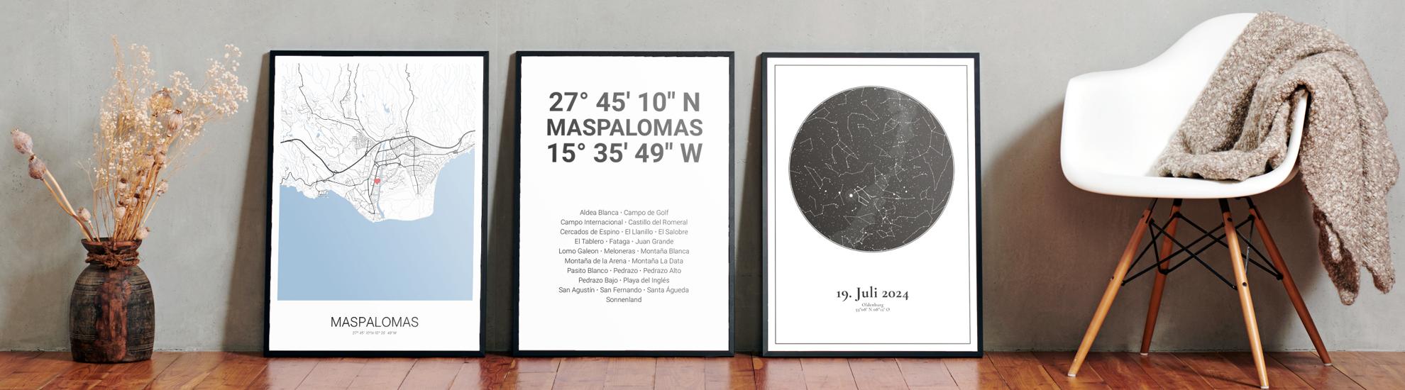 Wähle Farben und Layouts, die perfekt zu dir passen. Ob als klassische Karte in schwarz-weiß oder in modernen Farben. Bei Cartida kannst du ein Design in deinen Lieblingsfarben wählen. Erstelle eine Variante von Maspalomas, die perfekt zu dir und deiner Wohnung passt.