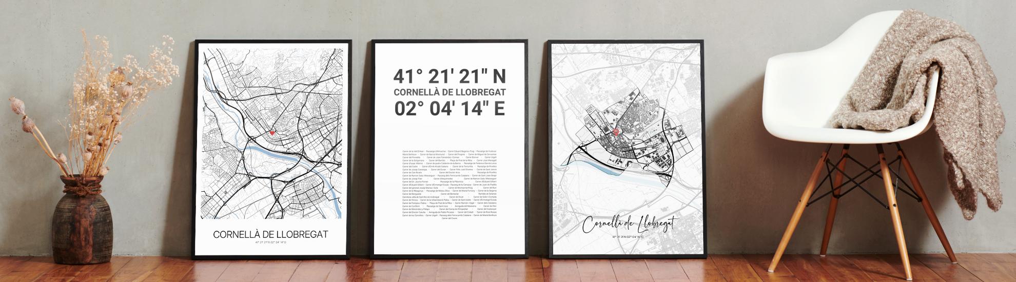 Wähle Farben und Layouts, die perfekt zu dir passen. Ob als klassische Karte in schwarz-weiß oder in modernen Farben. Bei Cartida kannst du ein Design in deinen Lieblingsfarben wählen. Erstelle eine Variante von Cornellà de Llobregat, die perfekt zu dir und deiner Wohnung passt.