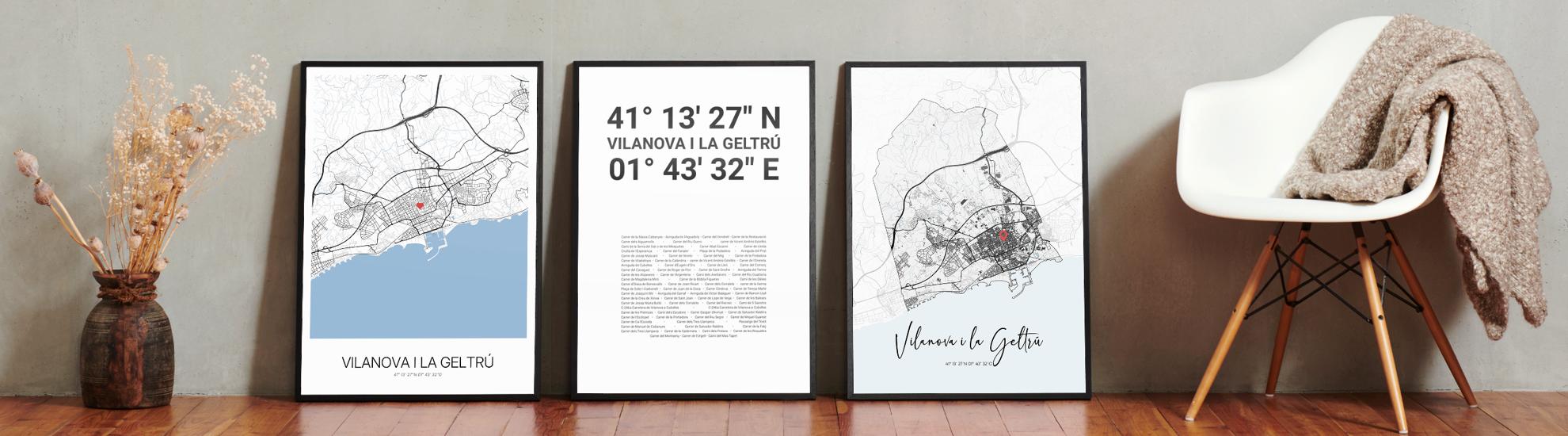 Wähle Farben und Layouts, die perfekt zu dir passen. Ob als klassische Karte in schwarz-weiß oder in modernen Farben. Bei Cartida kannst du ein Design in deinen Lieblingsfarben wählen. Erstelle eine Variante von Vilanova i la Geltrú, die perfekt zu dir und deiner Wohnung passt.