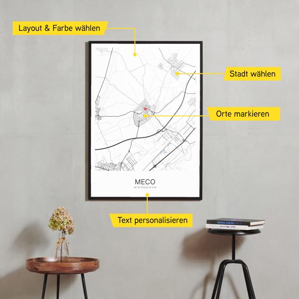 Wähle Farben und Layouts, die perfekt zu dir passen. Ob als klassische Karte in schwarz-weiß oder in modernen Farben. Bei Cartida kannst du ein Design in deinen Lieblingsfarben wählen. Erstelle eine Variante von Meco, die perfekt zu dir und deiner Wohnung passt.