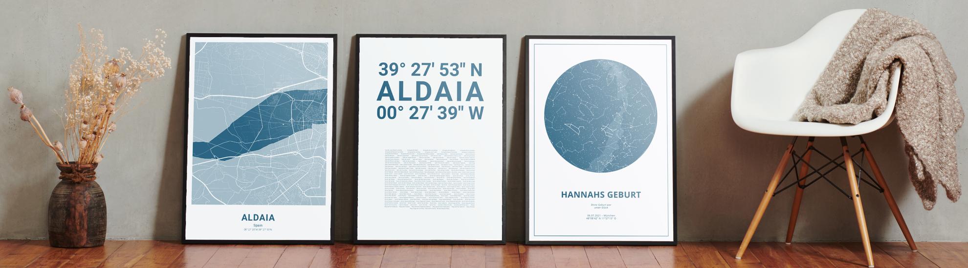 Wähle Farben und Layouts, die perfekt zu dir passen. Ob als klassische Karte in schwarz-weiß oder in modernen Farben. Bei Cartida kannst du ein Design in deinen Lieblingsfarben wählen. Erstelle eine Variante von Aldaia, die perfekt zu dir und deiner Wohnung passt.