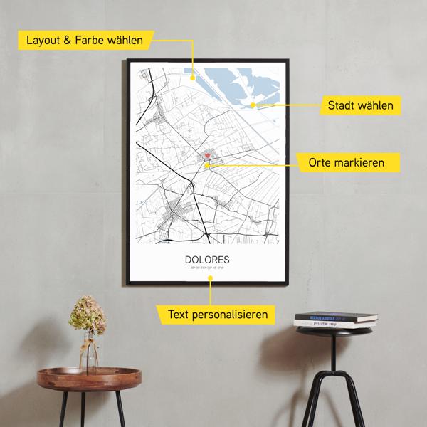 Wähle Farben und Layouts, die perfekt zu dir passen. Ob als klassische Karte in schwarz-weiß oder in modernen Farben. Bei Cartida kannst du ein Design in deinen Lieblingsfarben wählen. Erstelle eine Variante von Dolores, die perfekt zu dir und deiner Wohnung passt.