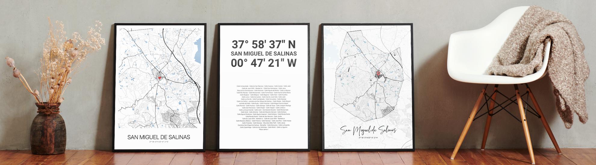 Wähle Farben und Layouts, die perfekt zu dir passen. Ob als klassische Karte in schwarz-weiß oder in modernen Farben. Bei Cartida kannst du ein Design in deinen Lieblingsfarben wählen. Erstelle eine Variante von San Miguel de Salinas, die perfekt zu dir und deiner Wohnung passt.