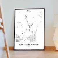 Bilder, die Geschichten erzählen über Reisen, Liebe und Erinnerungen. Wir bei Cartida haben deine Stadtkarte von Sant Joan d’Alacant in Comunitat Valenciana, Spanien. Dargestellt als Schwarzplan mit Gebäuden oder als Minimal City Map mit filigranen Straßennetz.