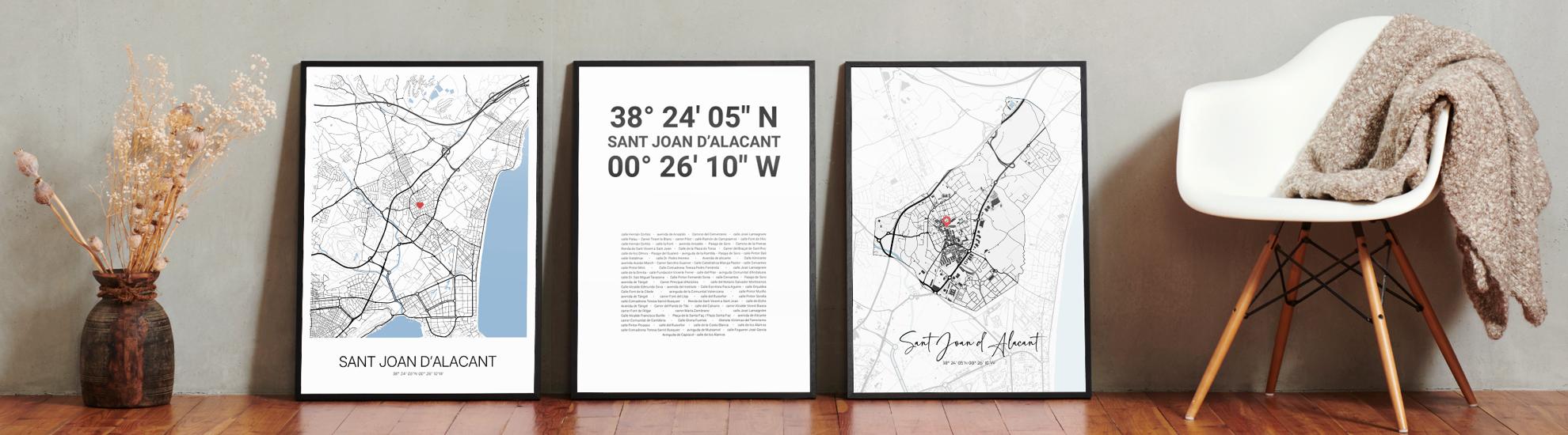 Wähle Farben und Layouts, die perfekt zu dir passen. Ob als klassische Karte in schwarz-weiß oder in modernen Farben. Bei Cartida kannst du ein Design in deinen Lieblingsfarben wählen. Erstelle eine Variante von Sant Joan d’Alacant, die perfekt zu dir und deiner Wohnung passt.