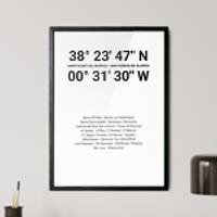 Zahlen, die die Welt bedeuten. Erstelle jetzt dein persönliches Koordinaten-Kunstwerk von deiner Lieblingsstadt. Entscheide selbst, ob Stadtteile, Straßen oder ganz eigene Texte abgedruckt werden. Perfekt als Geschenk zum Einzug oder für die eigenen vier Wände.