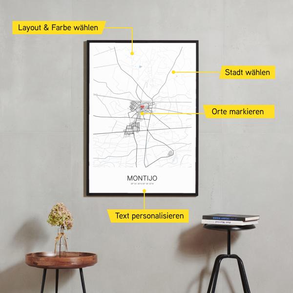 Wähle Farben und Layouts, die perfekt zu dir passen. Ob als klassische Karte in schwarz-weiß oder in modernen Farben. Bei Cartida kannst du ein Design in deinen Lieblingsfarben wählen. Erstelle eine Variante von Montijo, die perfekt zu dir und deiner Wohnung passt.