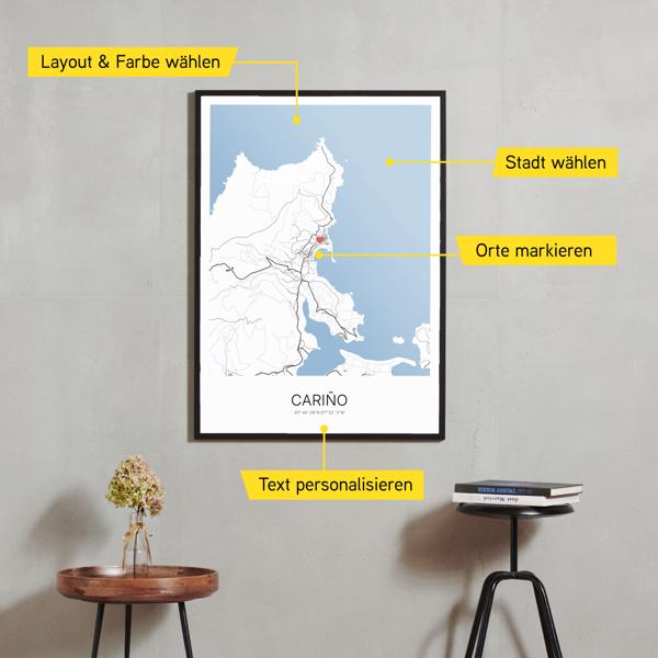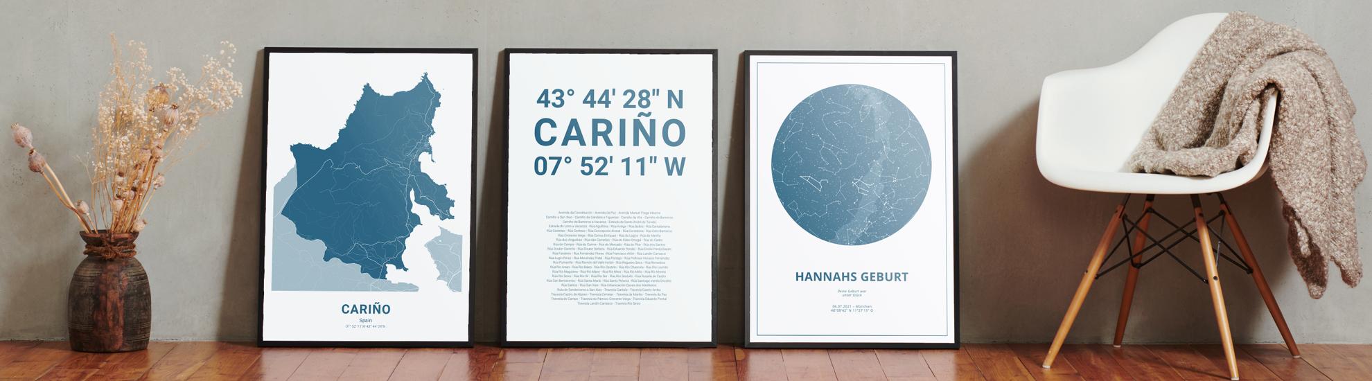 Wir bei Cartida haben alle deine Lieblingsorte. Erstelle im Cartida-Editor dein persönlichen Stadtplan für dich und dein Zuhause. Einfach den Ort eingeben und nach deinen Wünschen personalisieren: Markiere die wichtigsten Orte, wähle deine Lieblingsfarben und füge die Koordinaten und einen persönlichen Text hinzu.