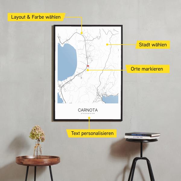 Wähle Farben und Layouts, die perfekt zu dir passen. Ob als klassische Karte in schwarz-weiß oder in modernen Farben. Bei Cartida kannst du ein Design in deinen Lieblingsfarben wählen. Erstelle eine Variante von Carnota, die perfekt zu dir und deiner Wohnung passt.