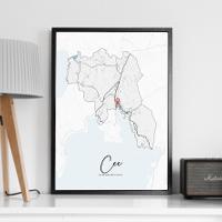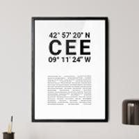 Bilder, die Geschichten erzählen über Reisen, Liebe und Erinnerungen. Wir bei Cartida haben deine Stadtkarte von Cee in Galicia, Spanien. Dargestellt als Schwarzplan mit Gebäuden oder als Minimal City Map mit filigranen Straßennetz.