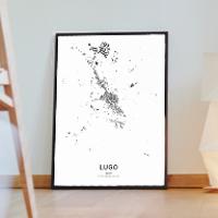 Bilder, die Geschichten erzählen über Reisen, Liebe und Erinnerungen. Wir bei Cartida haben deine Stadtkarte von Lugo in Galicia, Spanien. Dargestellt als Schwarzplan mit Gebäuden oder als Minimal City Map mit filigranen Straßennetz.