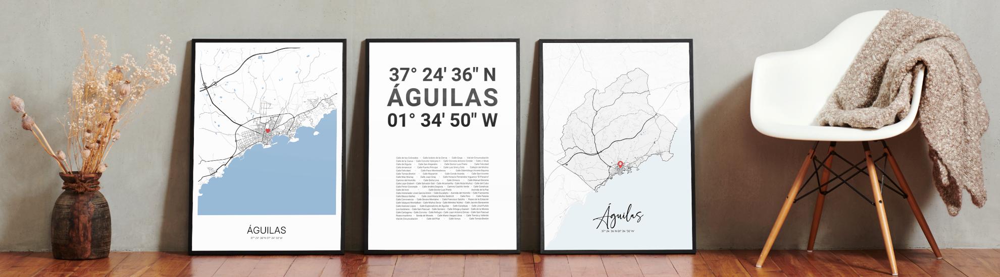 Wähle Farben und Layouts, die perfekt zu dir passen. Ob als klassische Karte in schwarz-weiß oder in modernen Farben. Bei Cartida kannst du ein Design in deinen Lieblingsfarben wählen. Erstelle eine Variante von Águilas, die perfekt zu dir und deiner Wohnung passt.