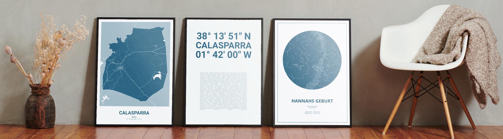 Wähle Farben und Layouts, die perfekt zu dir passen. Ob als klassische Karte in schwarz-weiß oder in modernen Farben. Bei Cartida kannst du ein Design in deinen Lieblingsfarben wählen. Erstelle eine Variante von Calasparra, die perfekt zu dir und deiner Wohnung passt.
