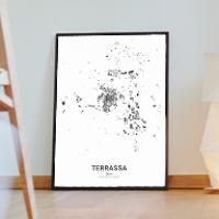 Bilder, die Geschichten erzählen über Reisen, Liebe und Erinnerungen. Wir bei Cartida haben deine Stadtkarte von Terrassa in Catalunya, Spanien. Dargestellt als Schwarzplan mit Gebäuden oder als Minimal City Map mit filigranen Straßennetz.