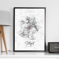 Bilder, die Geschichten erzählen über Reisen, Liebe und Erinnerungen. Wir bei Cartida haben deine Stadtkarte von Stuttgart. Dargestellt als Schwarzplan mit Gebäuden oder als Minimal City Map mit filigranen Straßennetz.