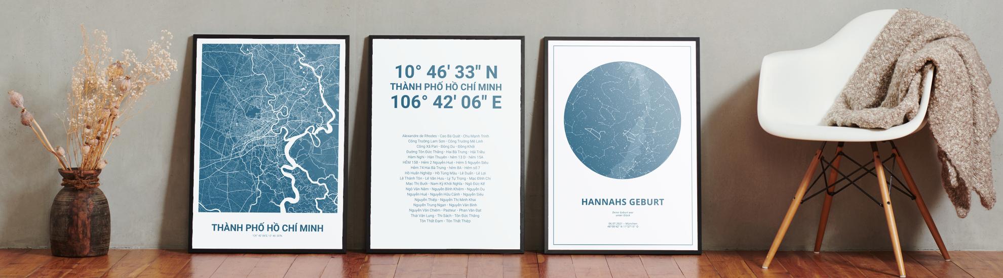 Zahlen, die die Welt bedeuten. Erstelle jetzt dein persönliches Koordinaten-Kunstwerk von deiner Lieblingsstadt. Entscheide selbst, ob Stadtteile, Straßen oder ganz eigene Texte abgedruckt werden. Perfekt als Geschenk zum Einzug oder für die eigenen vier Wände.