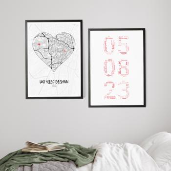 Ein besonderes Geschenk zur Hochzeit: personalisierte Poster mit dem Ort der Trauung, dem Datum oder dem Sternenhimmel eures großen Tages.